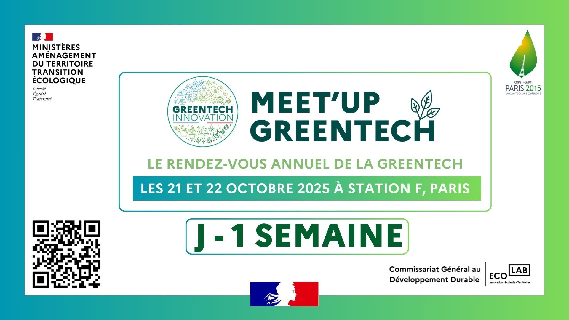Organisé par les ministères de l’Aménagement du territoire, de la Transition écologique et des Transports, le Meet’Up Greentech, premier salon d’affaires national et gratuit à destination de l’ensemble de l’écosystème greentech, réunit chaque année plus de 2 500 participants.